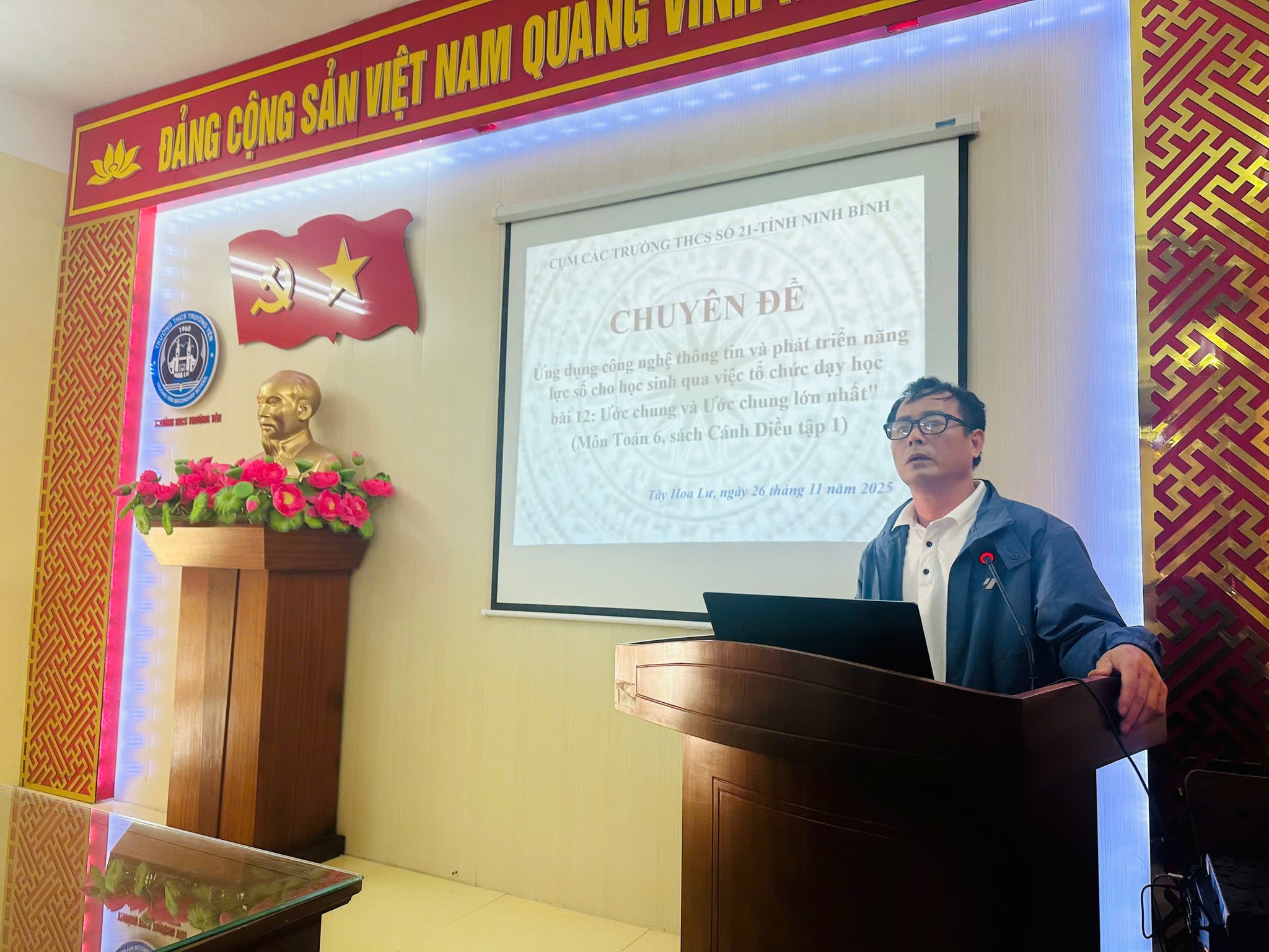 Thực hiện Kế hoạch số 03/KH-CUM21 ngày 15 tháng 10 năm 2025 của Cụm chuyên môn số 21-tỉnh Ninh Bình về việc sinh hoạt chuyên môn, tổ chức chuyên đề năm học 2025-2026. Chiều ngày 26/11/2025, Cụm chuyên môn số 21 đã tổ chức hoạt động chuyên đề tháng 11 tại Trường THCS Trường Yên với sự tham dự của các đồng chí đại diện BGH các nhà trường, Tổ trưởng (tổ phó) tổ chuyên môn cùng giáo viên môn Toán của 11 trường THCS, TH–THCS trong cụm số 21 thuộc phường Tây Hoa Lư, xã Gia Phong và xã Quỳnh Lưu. Đây là dịp để đội ngũ giáo viên giao lưu, trao đổi kinh nghiệm, đồng thời lan tỏa tinh thần đổi mới phương pháp dạy học trong giai đoạn đẩy mạnh ứng dụng CNTT và phát triển năng lực số cho học sinh.
