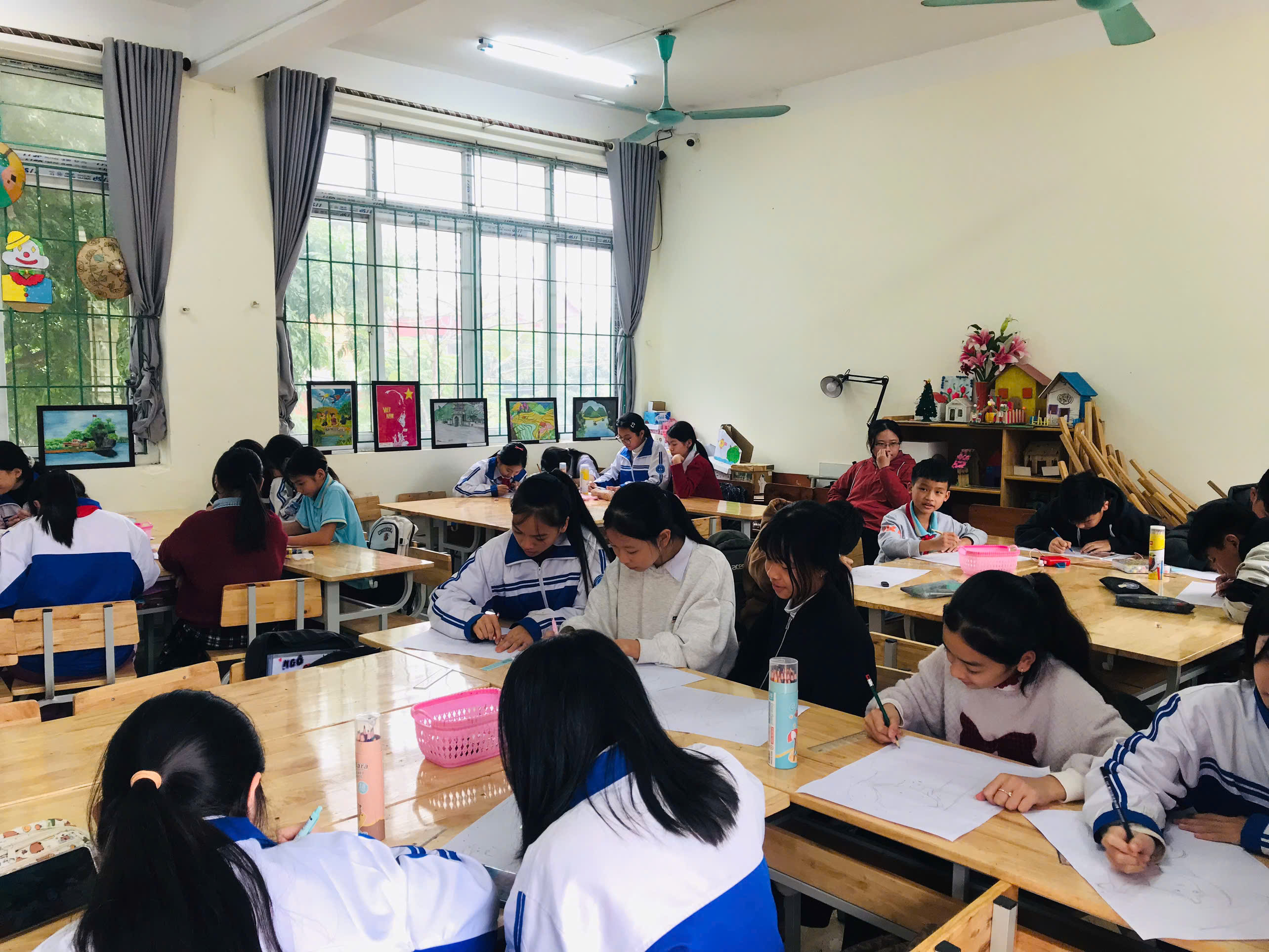 + CLB Nghệ thuật: Học sinh được vẽ tranh theo từng chủ đề của tháng. Trong suốt quá trình thực hiện, các em được các thầy cô hướng dẫn cách vẽ, phối màu sao cho bức tranh sinh động và đẹp mắt. Những bức tranh vẽ của các em đã thể hiện được vẻ đẹp của con người và thiên nhiên quê hương, đất nước; ca ngợi những truyền thống tốt đẹp của dân tộc.