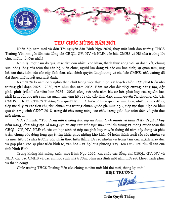 3. Thư chúc mừng năm mới 2026 của Hiệu trưởng nhà trường.