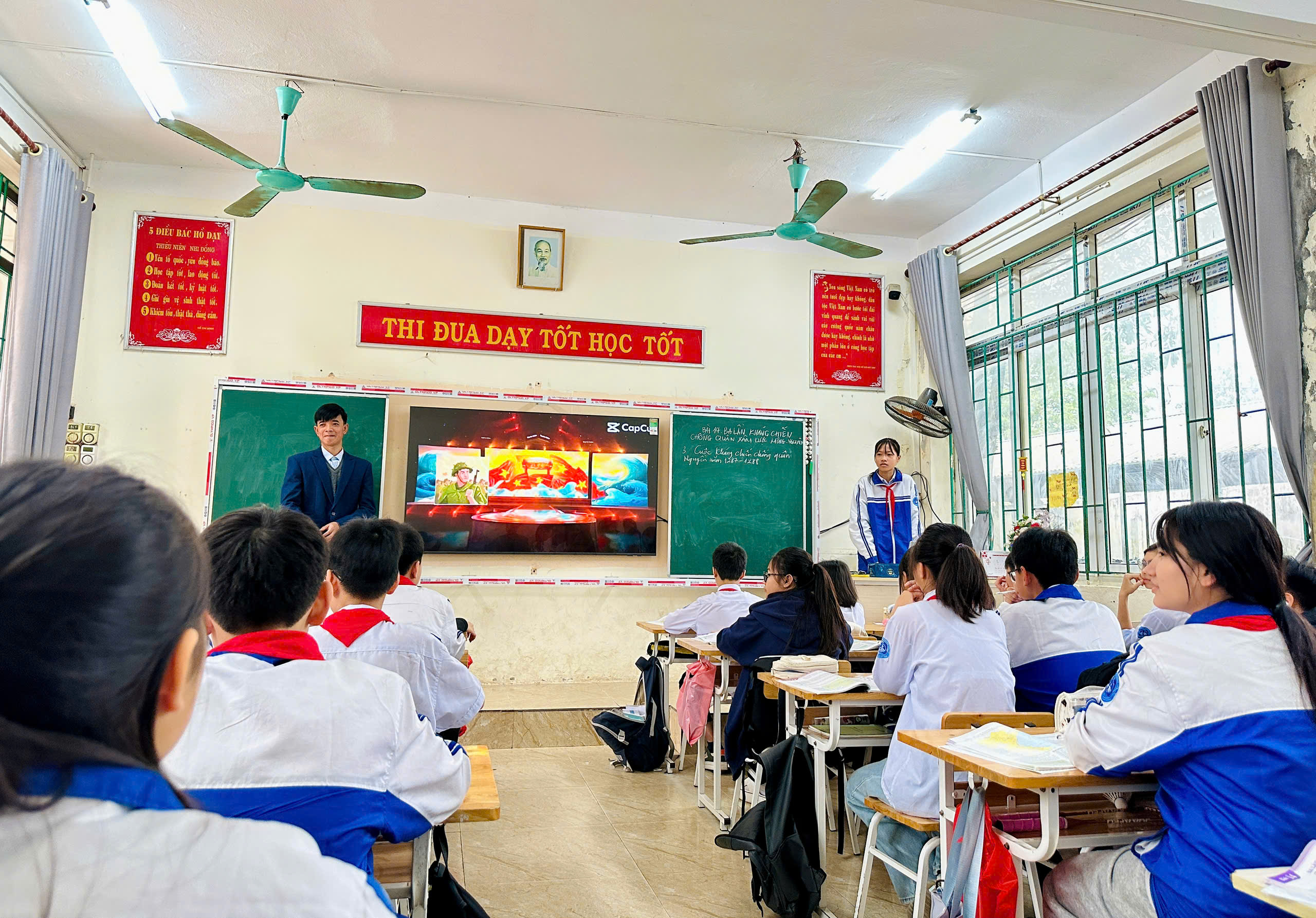 Đối với học sinh, nội dung bài học nhằm khắc sâu cho học sinh về kiến thức môn Lịch sử bởi chiến thắng trong ba lần kháng chiến chống quân Mông – Nguyên là một trong những trang sử vàng chói lọi nhất trong lịch sử dân tộc ta. Qua các kĩ thuật dạy học hiện đại, áp dụng hiệu quả công nghệ thông tin, trí tuệ nhân tạo AI, phương pháp dạy học và cách thức, hình thức tổ chức các hoạt động học tập cho học sinh, bài học giúp làm nổi bật tinh thần đoàn kết, sức mạnh của “Hào khí Đông A”, tinh thần, ý chí quyết tâm “Sát Thát” và sự đồng lòng giữa quân và dân nhà Trần; khắc họa được tầm vóc của các vị anh hùng dân tộc; tài thao lược của Hưng Đạo Đại Vương Trần Quốc Tuấn, đồng thời giúp hình ảnh cha ông trở nên gần gũi và đáng ngưỡng mộ hơn đối với học sinh. Học sinh rất hứng thú trong học tập, học tập tích cực, sôi nổi và hiểu bài, nắm vững kiến thức bài học hơn.